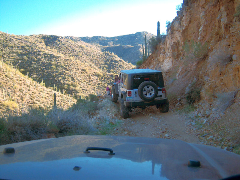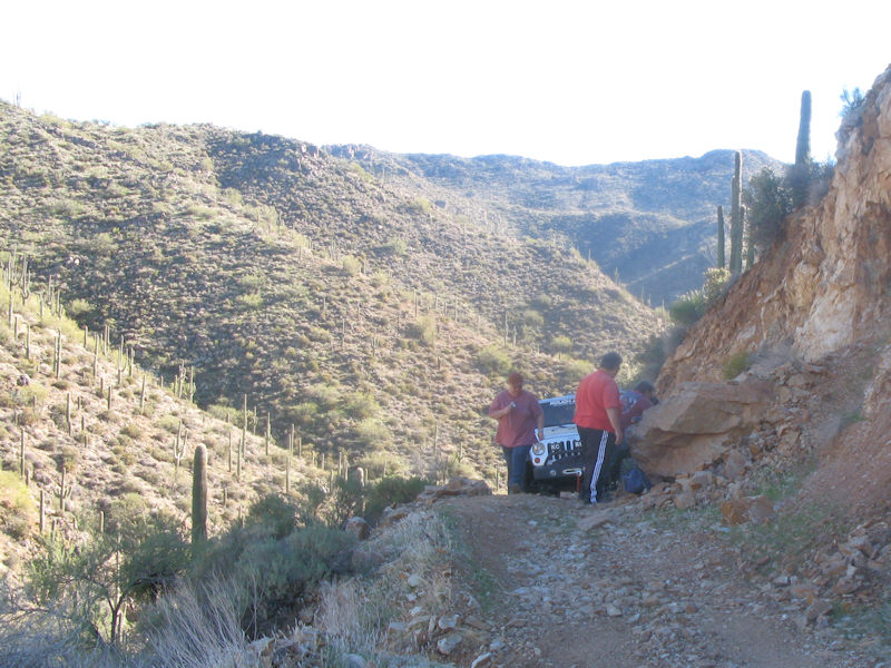After traveling though a wash heading up a small rocky hill: