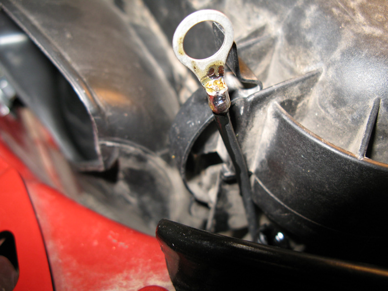 Connect the power wire to the fuse block and the bottom of the RTMR Panel. I put a rubber cap on the screw/bolt: