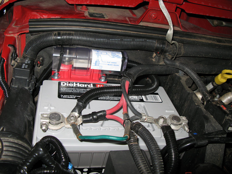 Installed on top of the relay - the red side will be to the battery, and the other side is connected to ground which I already wired: