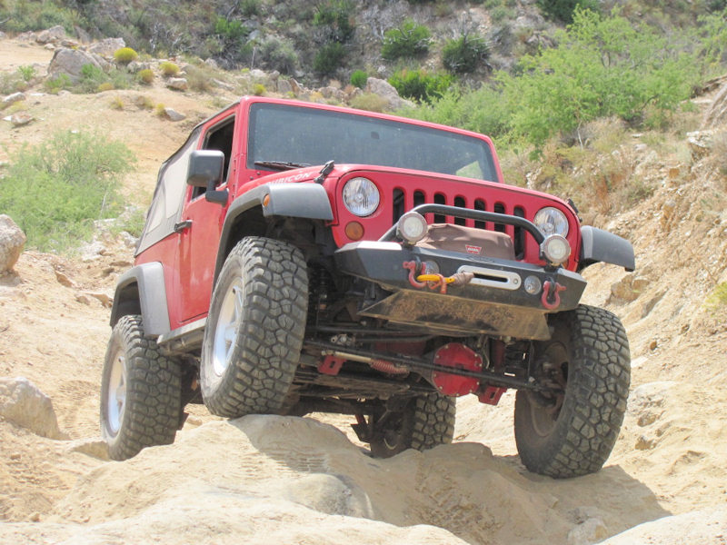 Wade's JK on 35s with a 3" lift. Note the glass in the foreground from a vehicle that flopped: