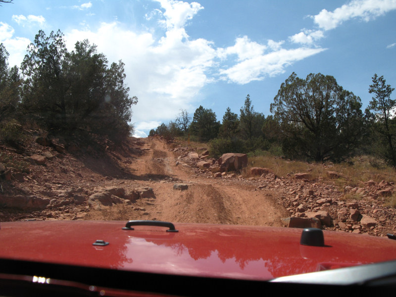 The Trail:Greasy Spoon, named after a nearby tank, is located in Sedona and runs from a well graded trail to a rocky steep trail that runs in and out of canyons. The difficult portion of the trail is named Diamondback (after the gulch). Running this portion of the trail from West to East adds to the difficulty since the climbs are harder West to East. Rating:3.0 Runs:Date: 8/30/2009Suspension: TeraFlex 2.5" Spring Lift, BFG 35x12.50x17Photos:The trail starts out flat and scenic: