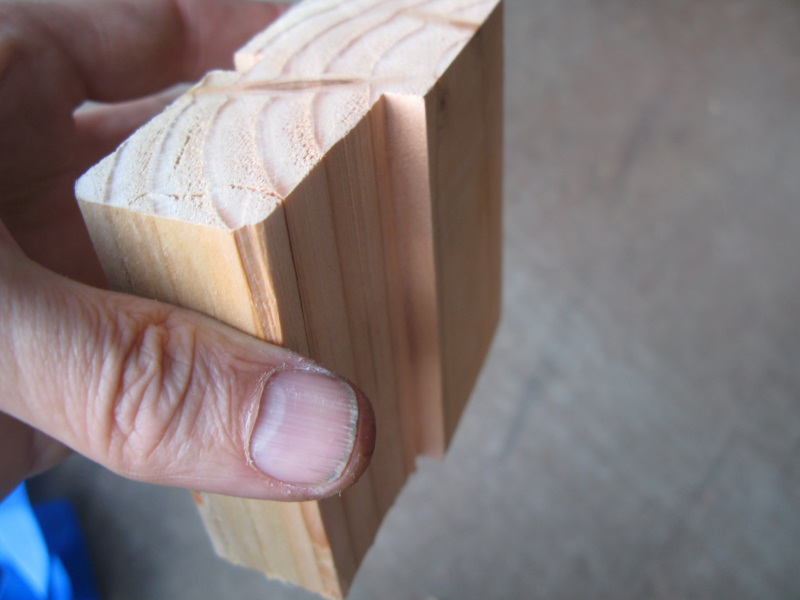 I then cut 3.5” off a 2x4, and made a 1/4" deep by 1.5” wide channel on one of the 3.5” lengths and a small channel down the middle of the other side of the 3.5” length. This is a side view showing the two channels: