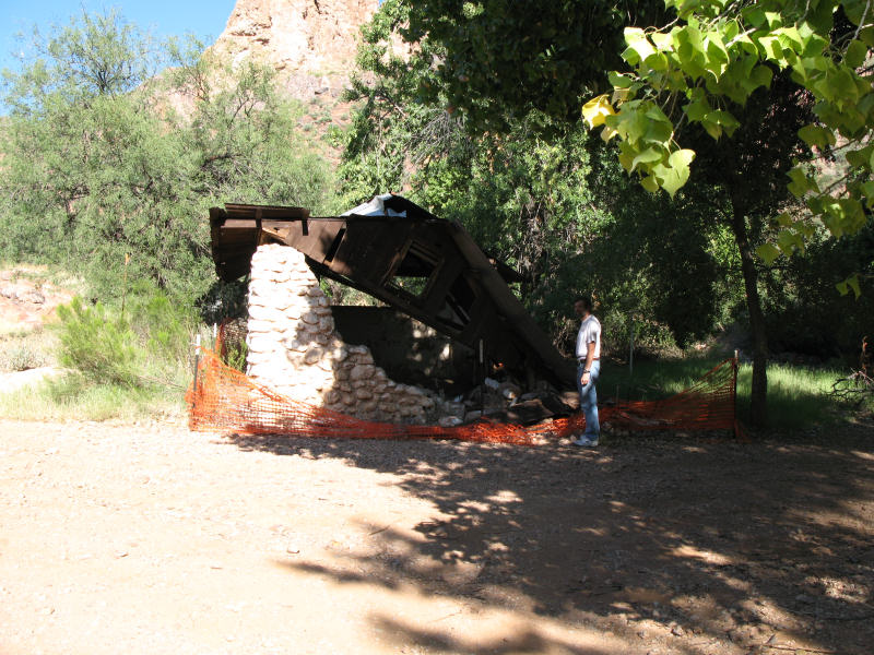 After lunch and checking out the area we left through Box Canyon. Date: 1/1/2009Suspension: TeraFlex 2.5" Spring Lift, stock wheels and tiresPhotos:We decided to go though the rock garden this time. I misjudged and the tire slid to the wrong side of the first boulder but fortunately it didn't hit anything. We had a small group watch us head in. Here's the video. We decided to investigate the mine near the cabins. It's not really a mine. Turns out it was a cantina, bordello and/or jail. Anyway, here's what it looks like from the inside: