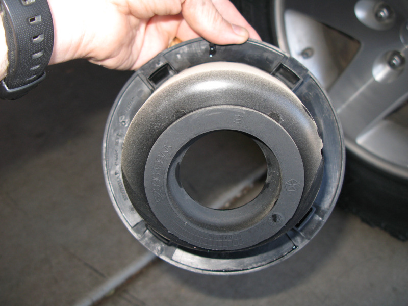 The Mod:Addition of a metal MOPAR fuel filler door and locking gas cap. What it does:The stock 2008 Jeep Wrangler does not have a filler door and the gas cap is not locked. This mod adds a filler door to hide and protect the gas cap, and locking gas cap to help keep honest people honest. MOPAR sells two kinds of locking gas caps, this gas cap use the same key as the ignition key. Installation took about 1 hour. Photos:Side view of the filler door before installation: Here’s a shot of stock gas cap/filler area: To install, first you need to remove the drivers side tail light assembly to get to the filler area. You only need to remove the two inside (right) screws to disconnect the assembly: Assembly disconnected: Push on the connector tab to disconnect the wiring so the assembly can be completely removed: Assembly completely removed: Remove the old gas cap by pushing the plastic connector to the side: You need to pop out the old filler neck. There are four tabs that hold it in place. You need to gently push on the tab with a screwdriver so it is free of the body sheet metal. This is one of the bottom tabs: And one of the top tabs: With the two back tabs free you can get your fingers inside the top and slide it to the rear - don’t force it or you may bend the sheet metal: All four tabs free, slide it off: Here’s a shot of the rear of the top. You can see the four tabs: Here’s what it looks like with it removed: Remove the rubber gasket from the old top: The rounded part of the gasket is on the top (outside): Install the old gasket in the new filler door top: Ensure the gasket is seated properly on the front and the back: Remove the aluminum 4 mm hex key screws from the filler door: Note that the top and bottom screws use a separate nut and they don’t have to be removed (in the picture I removed all screws): You need to slide the two slots in the bottom of the neck into the body sheet metal, and the top two tabs are secured like the older filler neck. The picture illustrates the bottom slots: The slots need to slide in here: Slide the neck into position. Here’s the bottom slots in place: Here are the top tabs clicked in place: Ensure the rubber gasket is seated properly: View from the tail light hole: Push the new gas cap plastic line in the hole and screw it in place: If you took the top and bottom screws off, you need to replace them. Here’s where the nuts will rest when they are in place: Here’s the back of the filler door showing where they go: Carefully screw the aluminum screws back in place. Remember that it’s easy to strip aluminum: Align the filler door screws with the neck top. You need to screw the aluminum screws in place. Remember that aluminum screws strip easily, so don’t force anything! You should loosely start all four screws using an “X” pattern. Once all screws are started they can be tightened, again using a “X” pattern. The screws are supposed to be torqued to 15 inch pounds: I didn’t have a torque wrench that small, so I used some Loctite on each screw: Once the door is in place the tail light assembly should be re-installed. Re-connect the power connector and screw it back in: Finished: If you have any questions or comments about this page click here to send email.Last modified: December 21, 2009 06:44:07 PM |