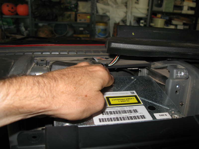 Connect the big connector to the back of the radio, route the wires with the other radio wires and use two tie wraps to hold the wire in place: