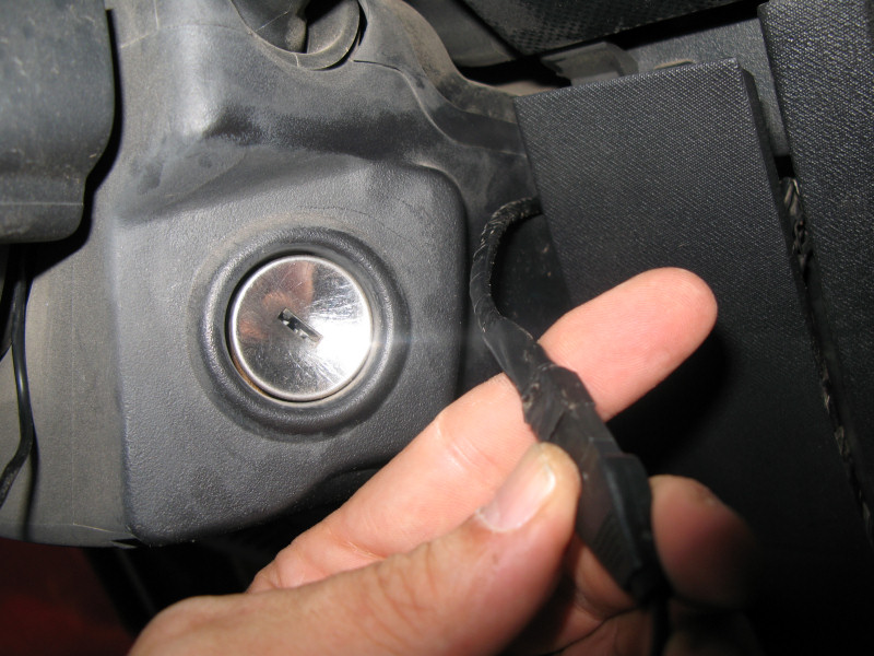 Use the putty knife and cloth to open the panel by the lower right side of the steering wheel: