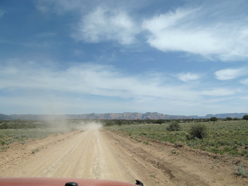 The graded road is dusty today: