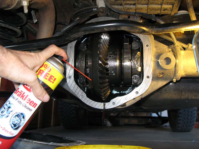 I also reached into the bottom of the diff with my finger and pulled out as much oil/break cleaner/etc before making the final clean of the mating surface with the brake cleaner. All clean and ready for the new diff cover: