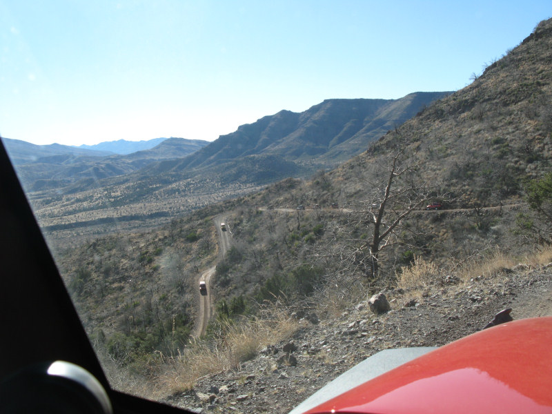 The Trail:There are a number of trails to get to Sheep Bridge. None are very difficult, but it will make for a long day. Rating:1.5 when dry, 2.0 when wet and muddy, 3.0 for the short trail down to the hot spring. Runs:Date: 12/28/2008Suspension: TeraFlex 2.5" Spring Lift, stock tiresPhotos:We joined the Central Arizona Jeepers on a ride to Sheep Bridge from Bloody Basin Road. The trip included a stop for lunch along Tangle Creek, exploring Sheep Bridge and some Benchmarking. Heading out. Here the road is well graded and wide: