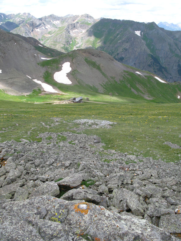 Heading down and looking back at Green Mountain (the peak at Stony Pass):