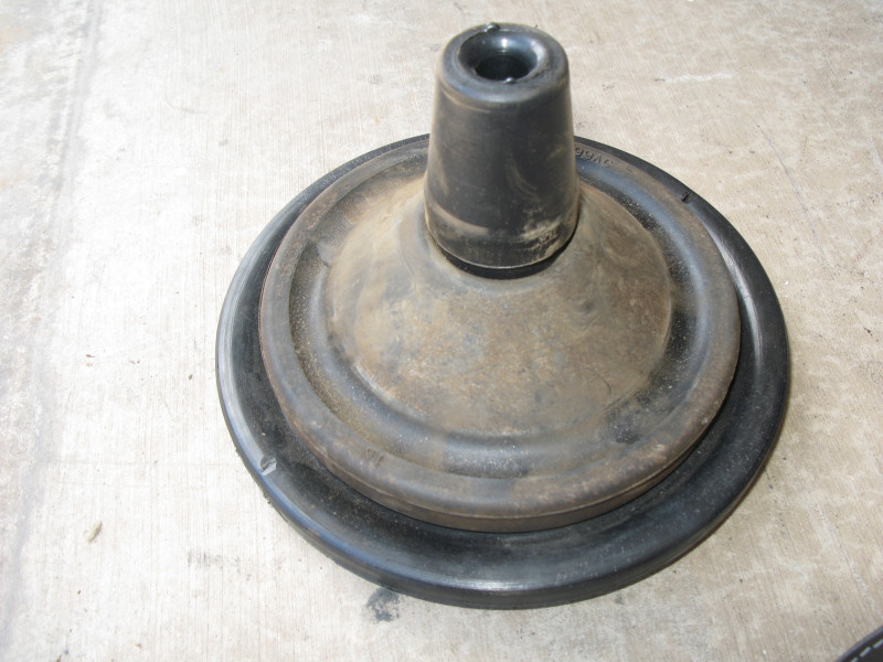 Top of driver side shock - note there should be a washer and rubber spacer just under the nut (not visible):