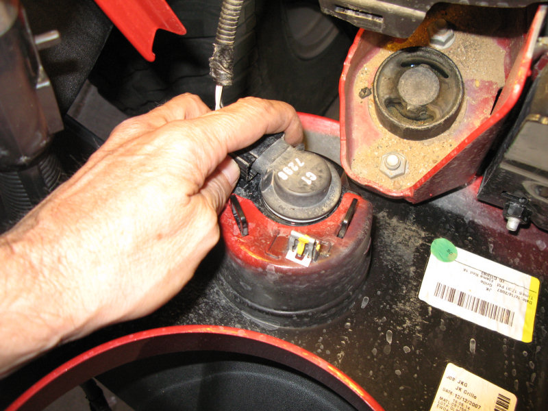 Next, there is a clip on the top of each turn signal that needs to come off. Gently pry it off with a flat screw driver: