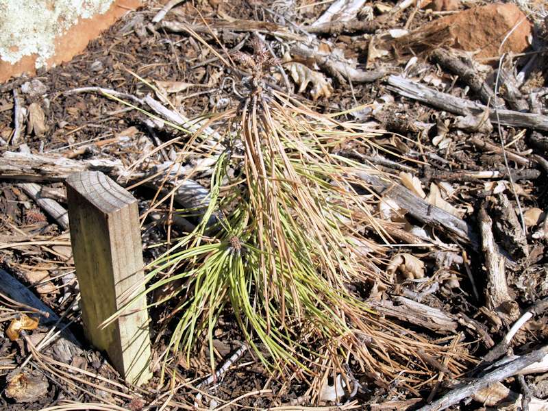 4/28/2014 - Things are warming up. We purchased a wilding permit and replaced all of the dead trees, just started seeds, and transplants that didn't look happy with new transplants. We now have 17 seedlings that are are just over a year old and 17 transplants. Here's a new transplant:
